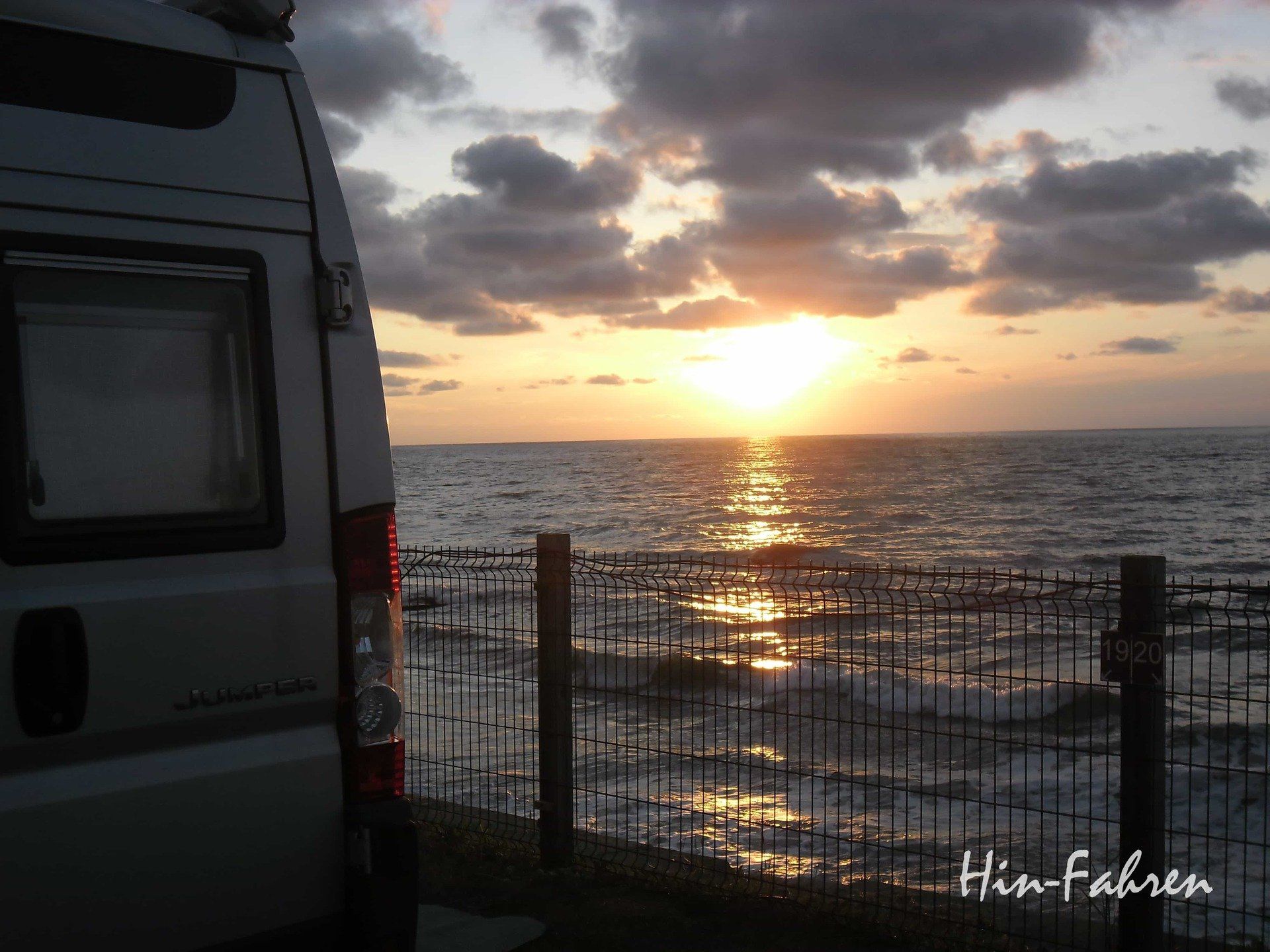 babyhellblauen VW-Bus mit Rostlöchern und einem Käfer-Motor. Es gingnach Südfrankreich und Nordspanien, auf den Pilgerweg und an die Atlantikküste, das war glaube ich vor etwa 25/27 Jahren (bin ich wirklich schon so alt). Der Einbau war eine Klappbank und eine große Holzkiste für die Materialien und Klamotten, dazu ein Gaskocher und ein Wasserkanister: Wohnmobilausbau fertig. Es war genial, neben den tollen Kirchen und Orten fanden wir viele schöne freie Übernachtungsplätze – auch am Strand. Zwischendurch mussten die Bremsen gewechselt werden und am Berg überholten uns die Laster auf der rechten Spur, aber das gehörte einfach dazu. Es folgte ein