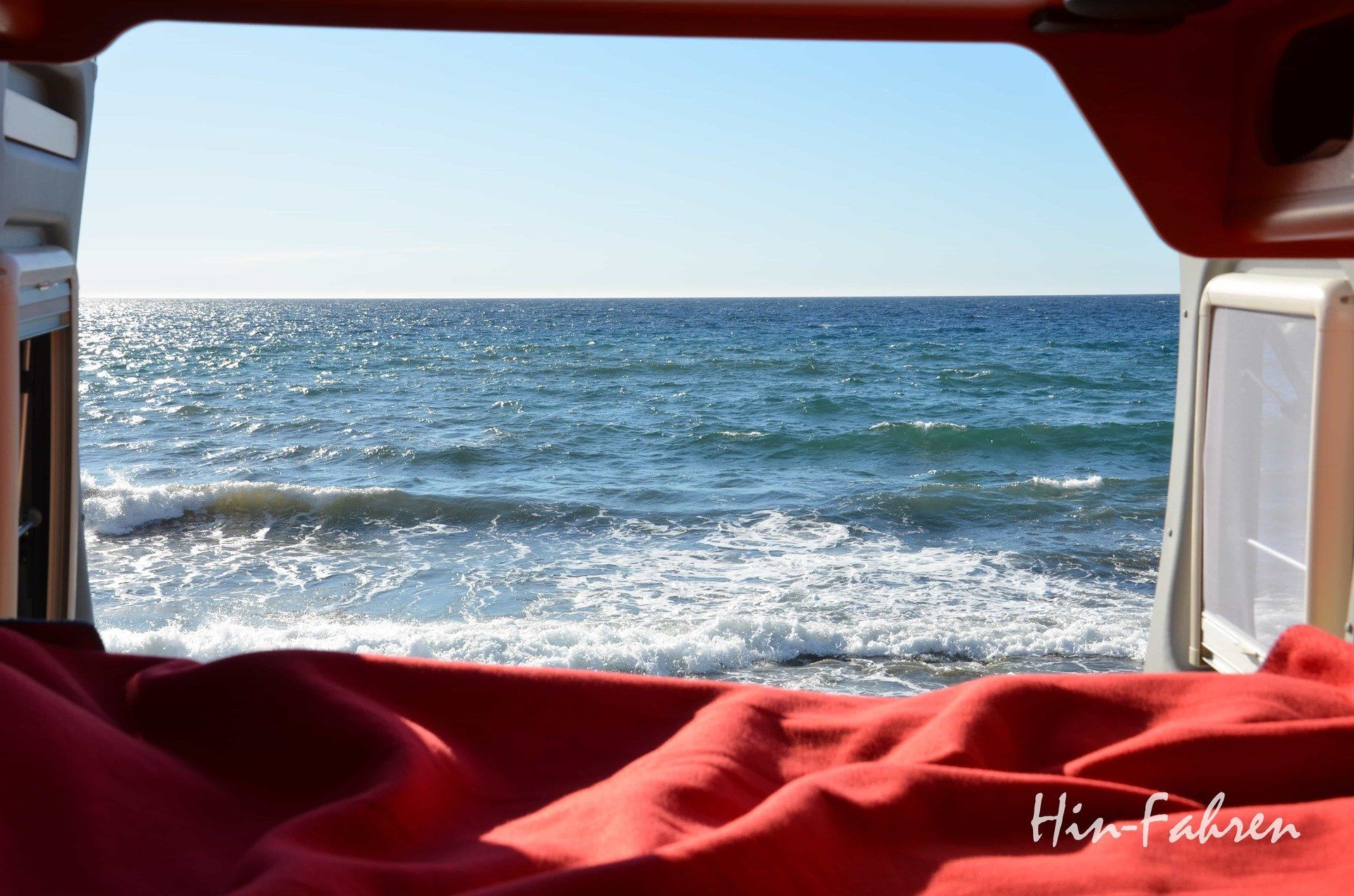 babyhellblauen VW-Bus mit Rostlöchern und einem Käfer-Motor. Es gingnach Südfrankreich und Nordspanien, auf den Pilgerweg und an die Atlantikküste, das war glaube ich vor etwa 25/27 Jahren (bin ich wirklich schon so alt). Der Einbau war eine Klappbank und eine große Holzkiste für die Materialien und Klamotten, dazu ein Gaskocher und ein Wasserkanister: Wohnmobilausbau fertig. Es war genial, neben den tollen Kirchen und Orten fanden wir viele schöne freie Übernachtungsplätze – auch am Strand. Zwischendurch mussten die Bremsen gewechselt werden und am Berg überholten uns die Laster auf der rechten Spur, aber das gehörte einfach dazu. Es folgte ein