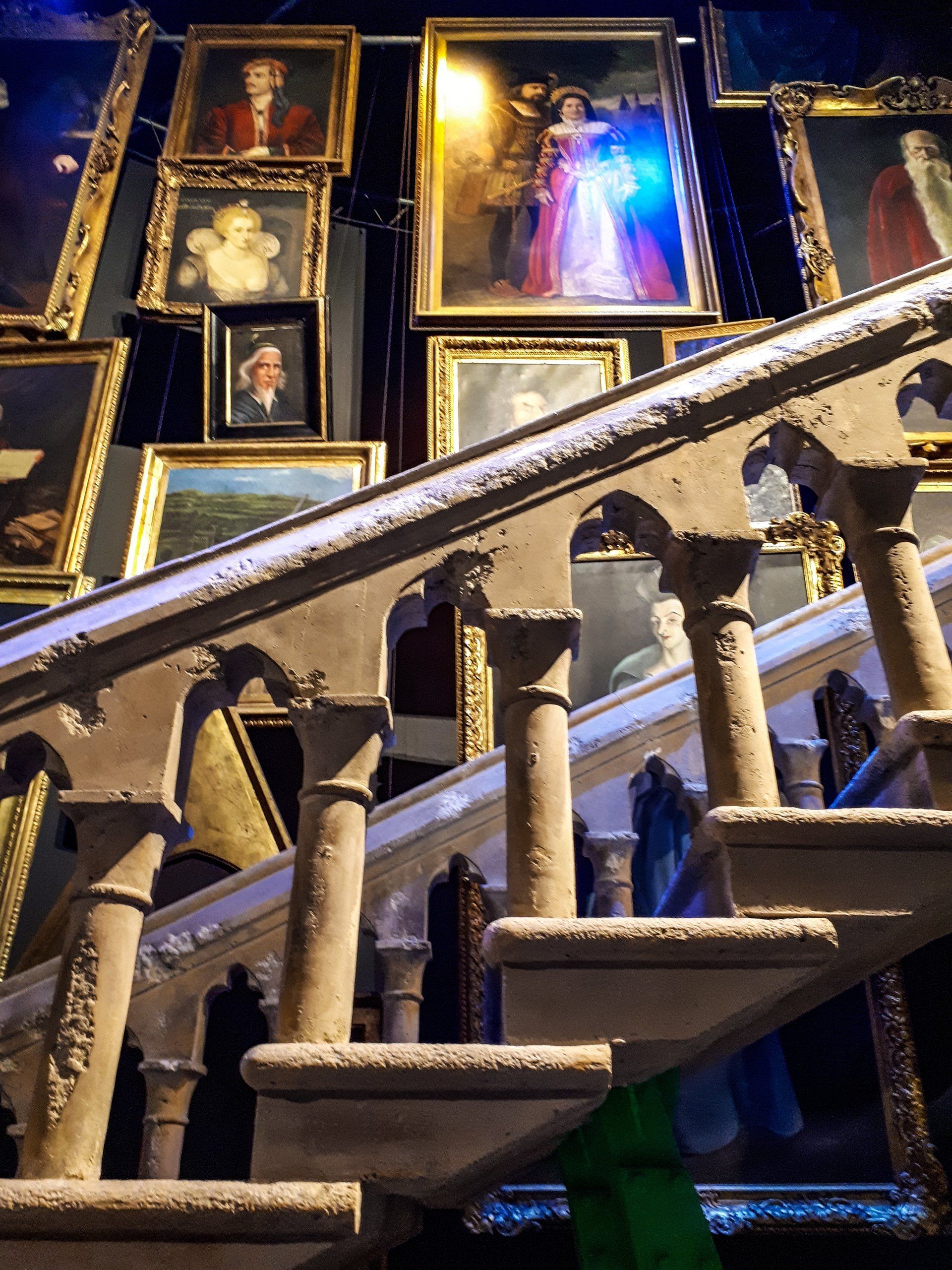 Zuerst wird man mit einer Gruppe anderer Besucher in ein Kino gebeten, in dem Harry, Ron und Hermine uns auf der Leinwand begrüßt haben und von ihrer Zeit in Hogwarts am Set erzählt haben. Plötzlich geht der Vorhang auf, die Leinwand verschwindet und wir stehen vor diesem riesigen Portal der Schule, in die die drei und so viele andere 10 Jahre lange gegangen sind. Das Tor war gigantisch und wir staunten, als die Türen aufschwangen und wir wirklich und wahrhaftig durch schreiten durften und im großen Halle, dem Speise- und Festsaal, landeten. Links und rechts die langen Tische, an denen Gryffindor, Slytherin, Hufflepuff und Ravenclaw Schüler saßen. Ich konnte mir die Kerzen unter der offenen Decke richtig gut vorstellen...