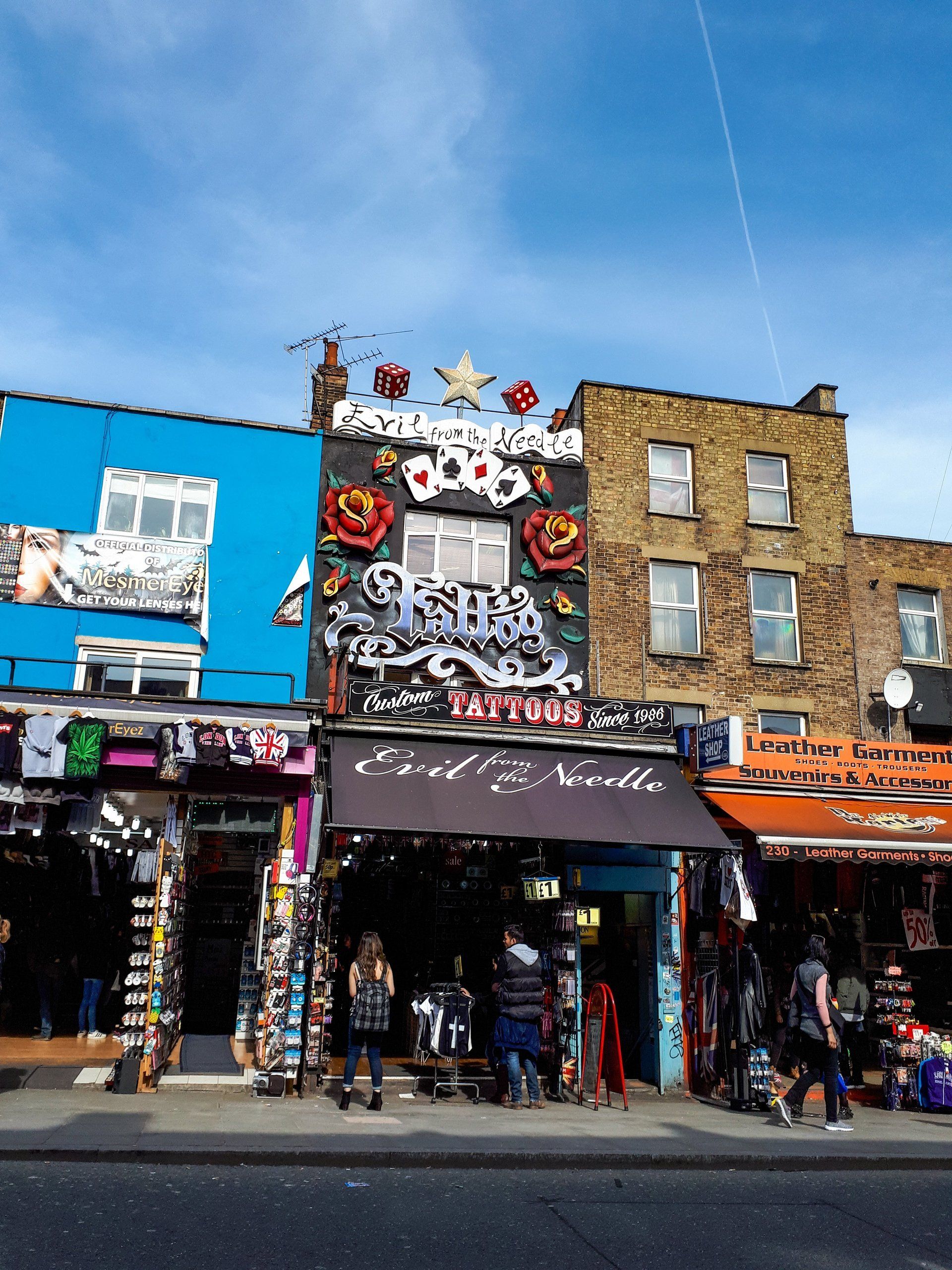 Wesentlich cooler fanden wir zwar die Gebäude mit den witzigen und obskuren Verzierungen, aber die Preise waren horrend! Es gab beispielsweise sehr geile, alternative Boots, leider ab 220 £ aufwärts...